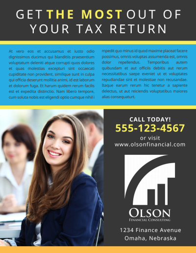 Flyers make it possible to reach many people with your message without breaking the bank. With our financial services flyer templates, you can customize a flyer that alerts customers to a new financial service or product, invites them to open an account, or give them the 4-1-1 on your latest promotions. We offer an intuitive online editor for adding your choice of graphics, artwork, photos, and more, ensuring your flyers portray exactly the message you’re looking to get across. Once you’re locked into the most effective design for your campaign, print your flyers from your own office, or let us do the printing for you.